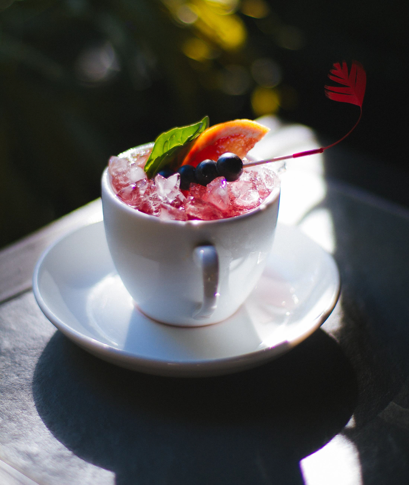 1. Ielejiet šeikerī greipfrūta sulu, pievienojiet bazilika lapiņas un mellenes.