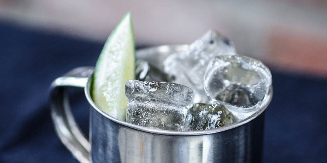 1. Ielieciet metāla krūzē vai glāzē ledu kubiņos