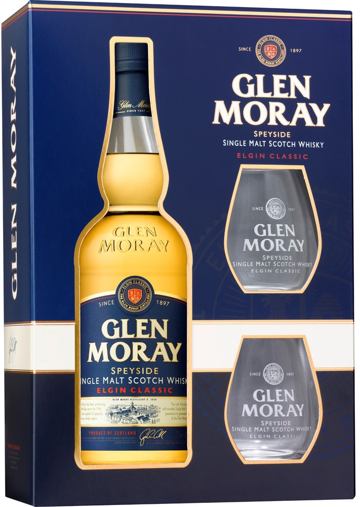 GLEN MORAY CLASSIC dāvanu kārba ar 2 glāzēm