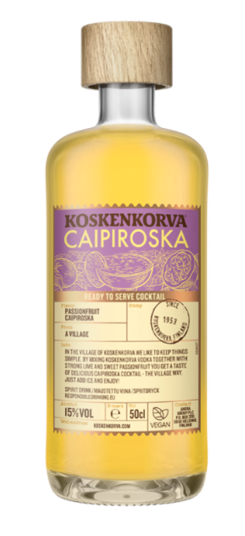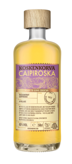 Koskenkorva ciematā patīk vienkārša dzīve. Sajaucot Koskenkorva degvīnu ar pasifloru, tiek iegūts garšīgs Passionfruit Caipiroska koktelis - ciemata stilā.